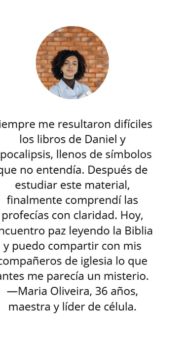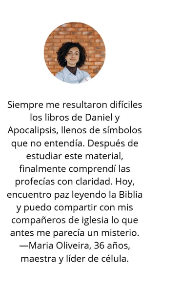 Este material exclusivo ha sido cuidadosamente preparado para ofrecer no solo información, sino también revelación, fruto de una investigación sólida y un compromiso con la verdad bíblica. Tendrá en sus manos una fuente confiable, estructurada y validada por expertos, para comprender finalmente las visiones de Daniel y Apocalipsis de una manera sencilla y reveladora.
